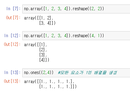 - .reshape : 행렬의 모양을 지정해 준다.