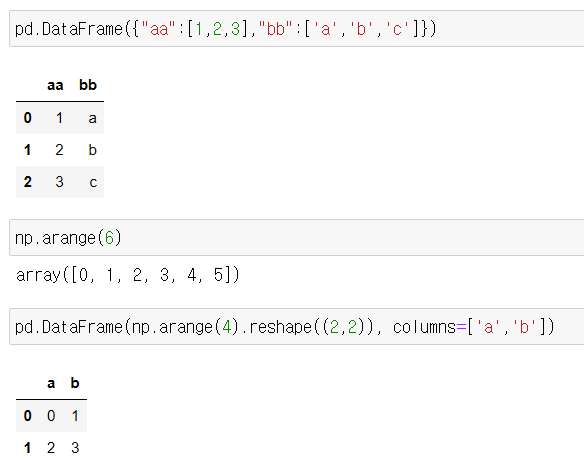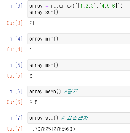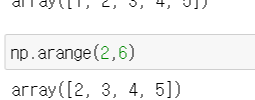 - .arange(6) = array([0, 1, 2, 3, 4, 5]) # 0부터 5까지. 갯수 6 이 아닌 index 6 이전까지