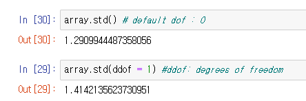 - numpy  기본적으로 dof 설정 안 해주면 0