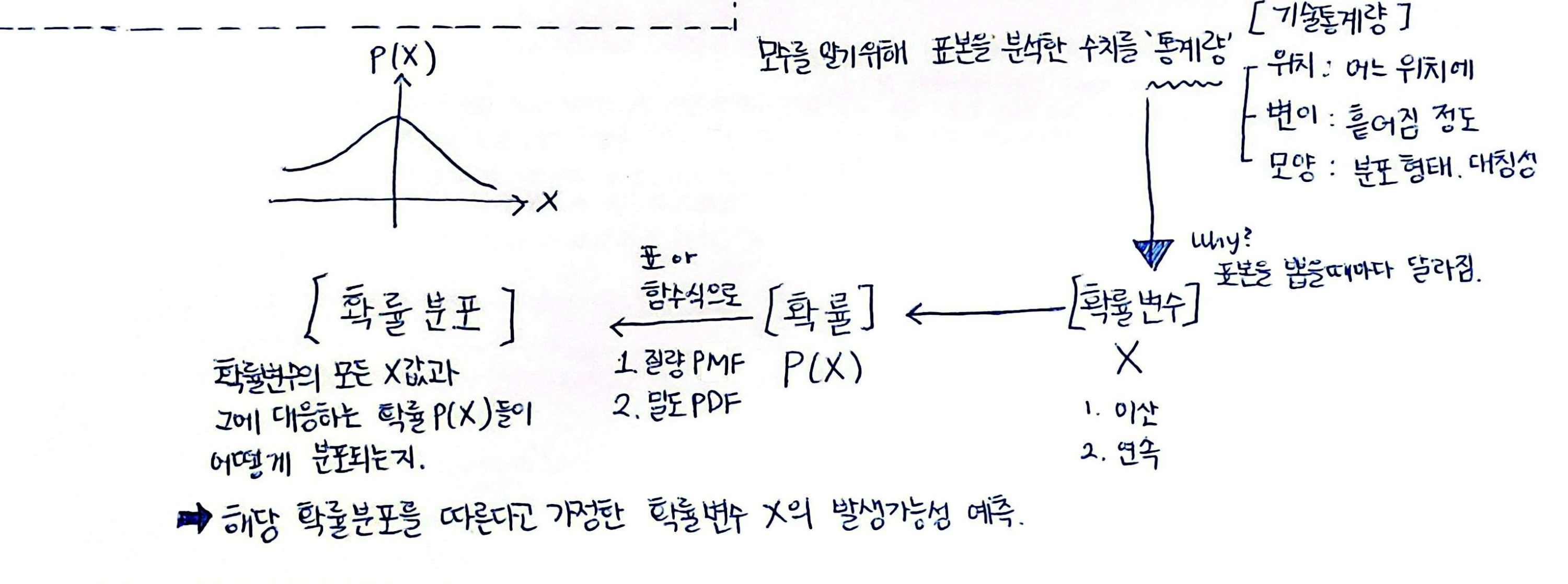 ※ 학습자료 정리한 내용입니다. - 상관분석을 통하여 두 변수 간에 선형성이 있음을 알았으나, 인과관계를 알 수는 없음! 회귀분석 (Regression Analysis)- (상관분석을 통해서) 두 개의 변수가 선형성이 있고, (회귀분석은) 인과관계를 알고 싶을 때 사용 ex) 마케팅 횟수를 늘리면 매출이 늘어나는가? 얼마나 늘어나는 가? 개념: 연속형 변수들 사이의 모형을 구한 뒤, 적합도를 측정해 내는 분석 방법목적 **설명: 종속변수에 대한 설명변수(독립변수)의 영향을 측정, 설명예측: 설명변수(독립변수) 정보가 있을 때 이에 따른 종속변수를 예측종류예측함수의 형태에 따라 선형회귀/ 비선형회귀독립변수의 개수에 따라 단순회귀/ 다중회귀종속변수의 개수에 따라 단변량회귀/ 다변량회귀 [수학적 표현]$$y..